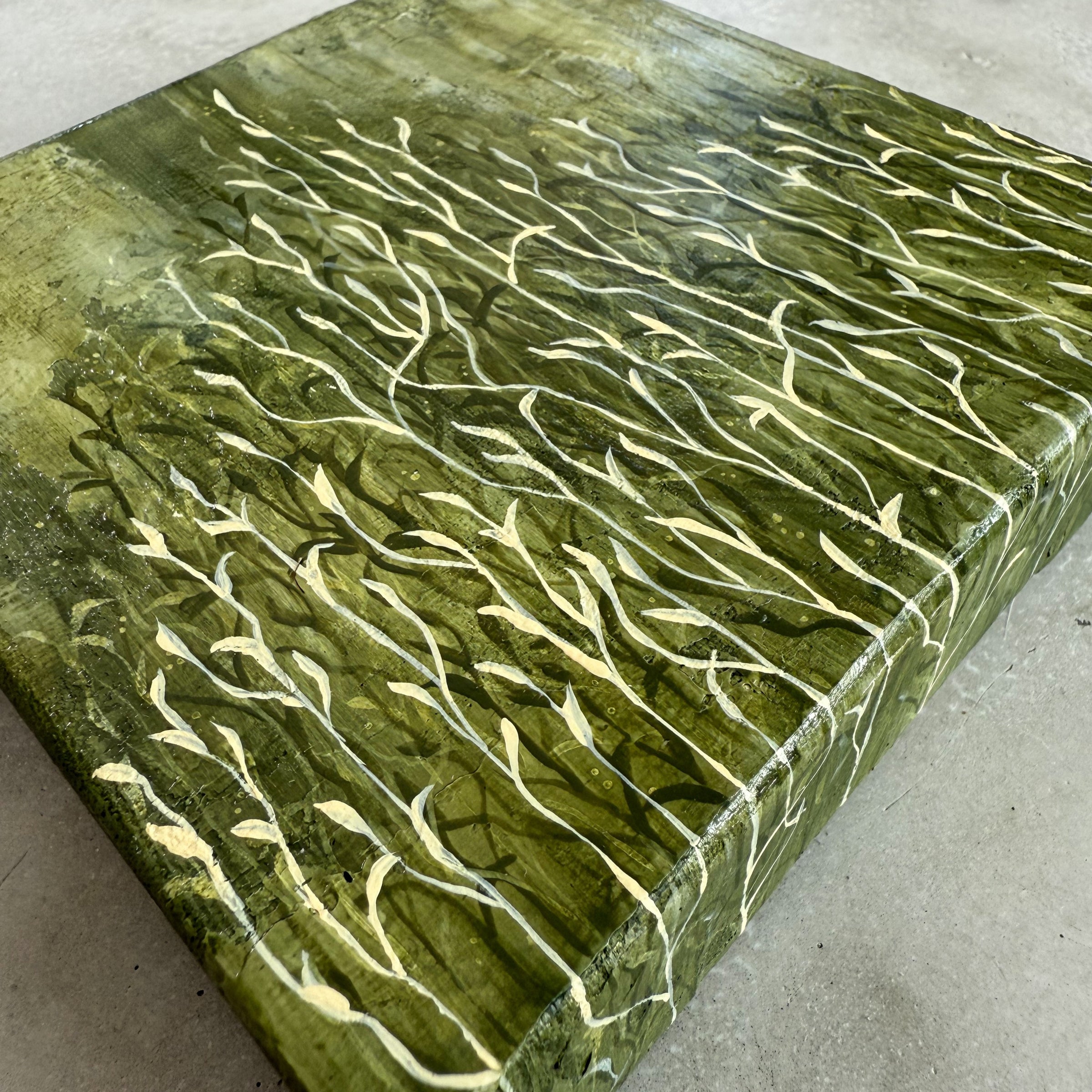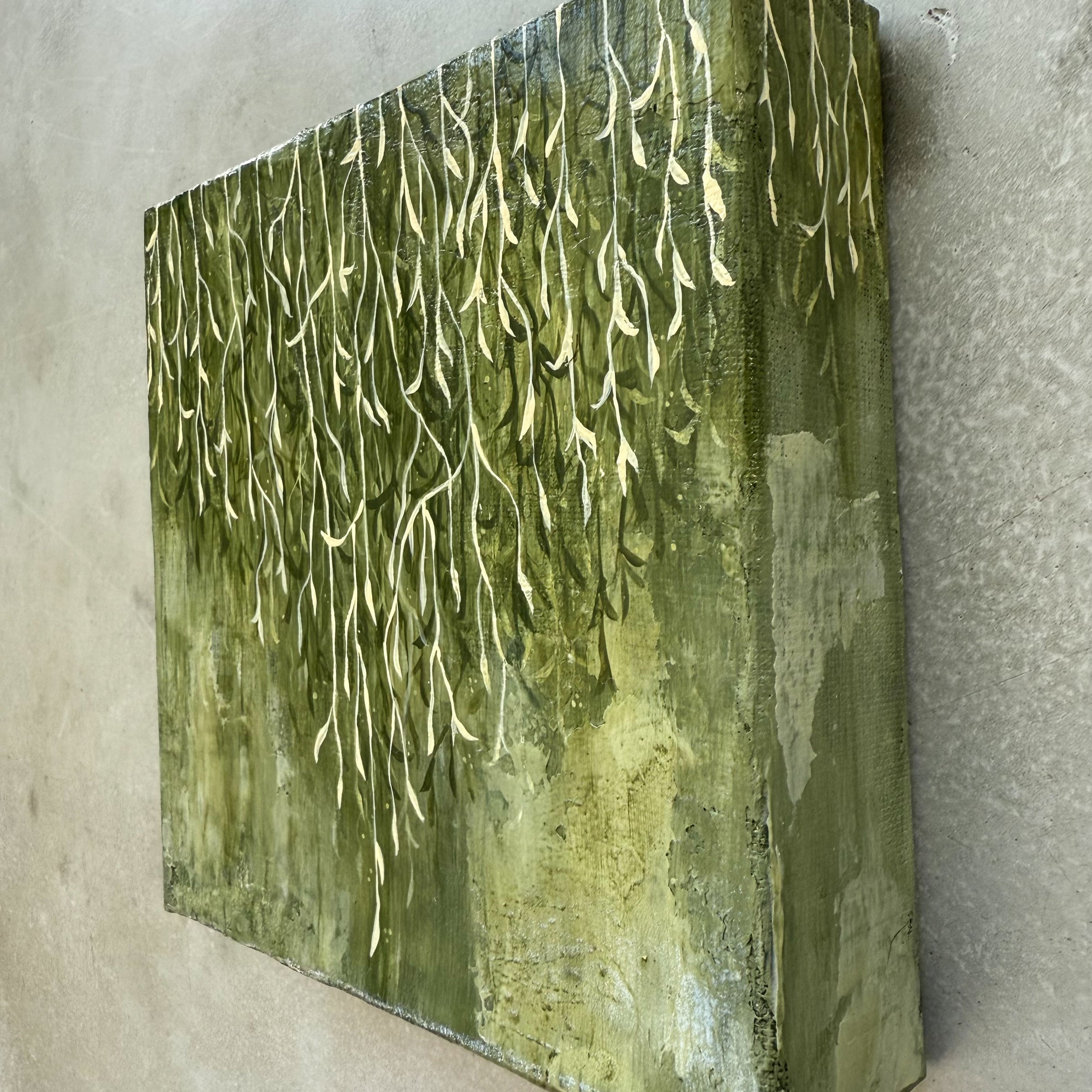 Willowfall was created in a quiet moment—layer by layer, letting the textured canvas guide the softness of the piece. The intention is feel like you’re standing beneath a willow tree with the light shifting above you, calm and slow. The cascading green and ivory strokes were painted to capture that dreamy, peaceful drift… a little reminder to pause, breathe, and let things fall gently into place.